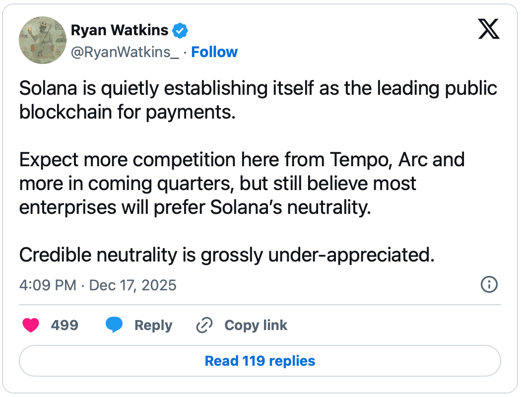 Stablecoin Settlement: Visa has launched stablecoin settlement in the US using USDC on the Solana network. Cross River Bank and a16z-backed Lead Bank are among the first participants. The choice underscores growing institutional interest in Solana as an alternative infrastructure for payments.